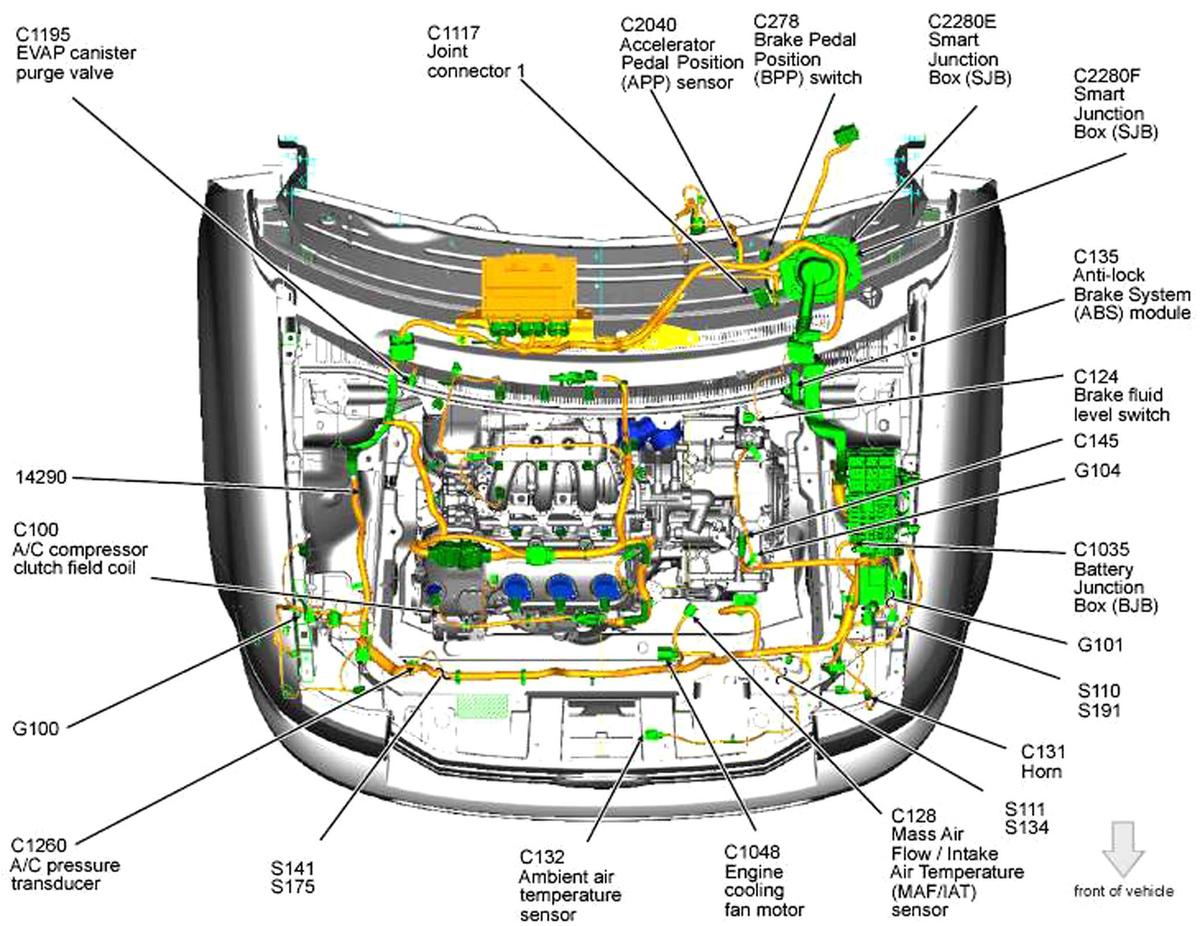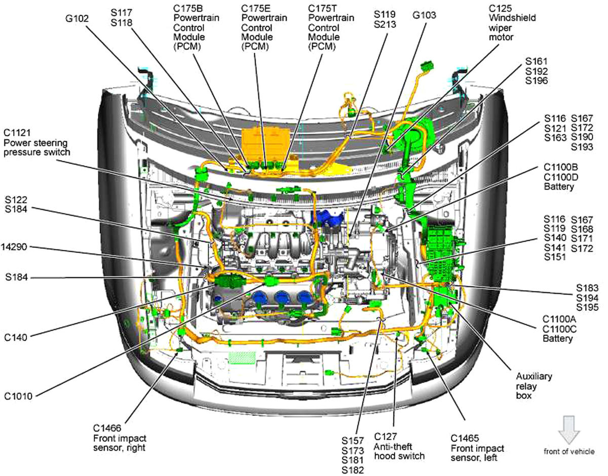 Powertrain Control Module (PCM) Rear of engine compartment. See Figure.