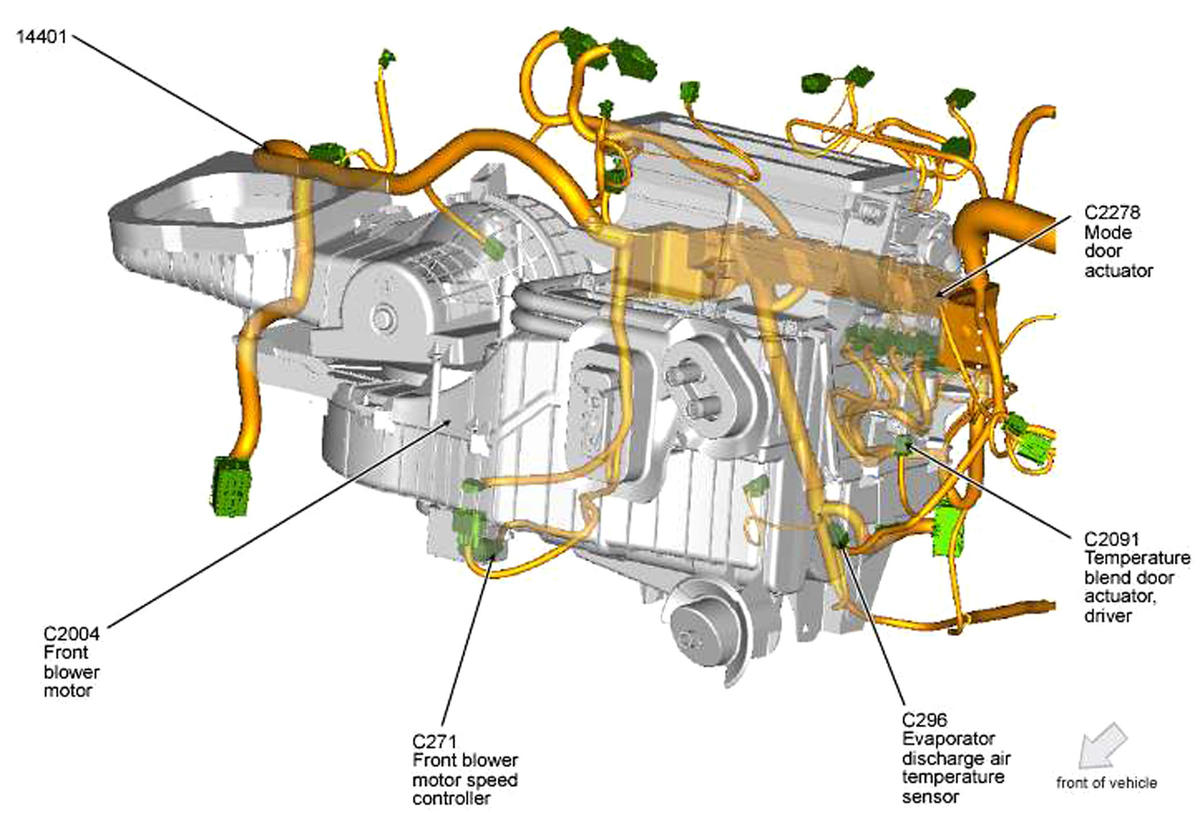 Front Blower Motor Speed Controller Right side of HVAC unit. See Figure.