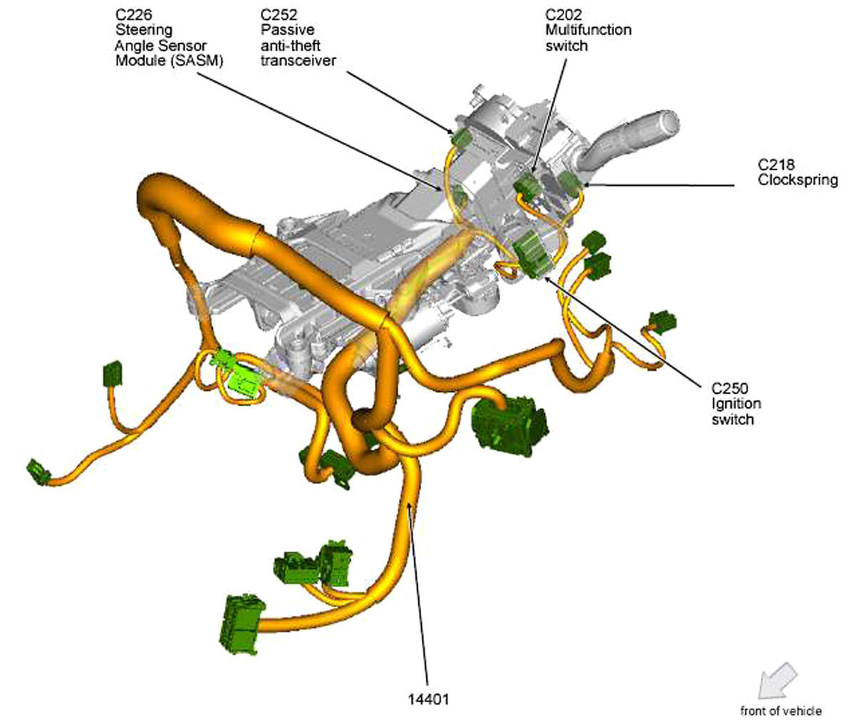 Steering Angle Sensor Module (SASM) Top of steering column. See Figure.