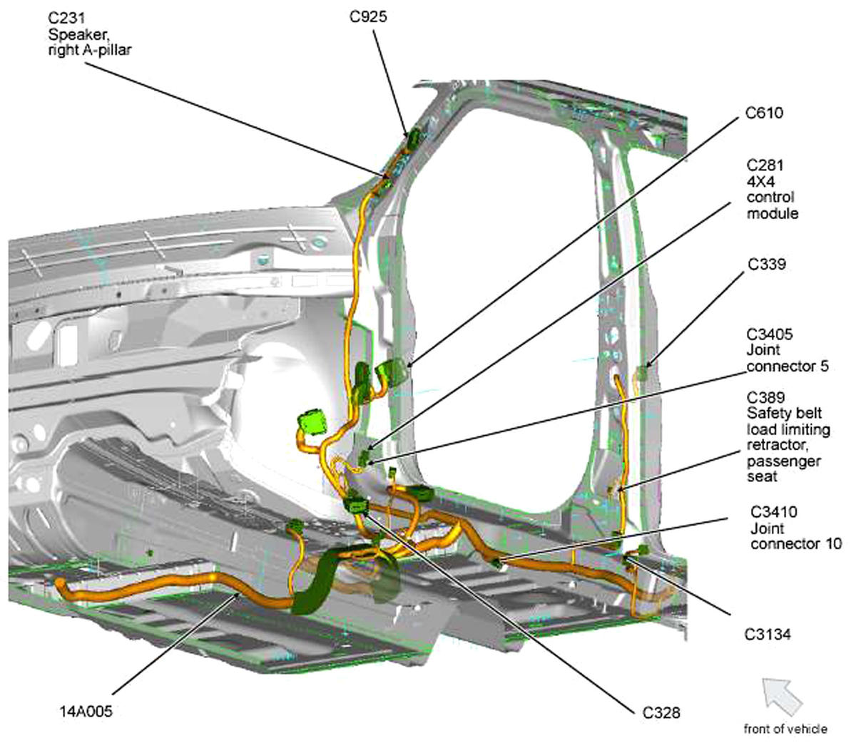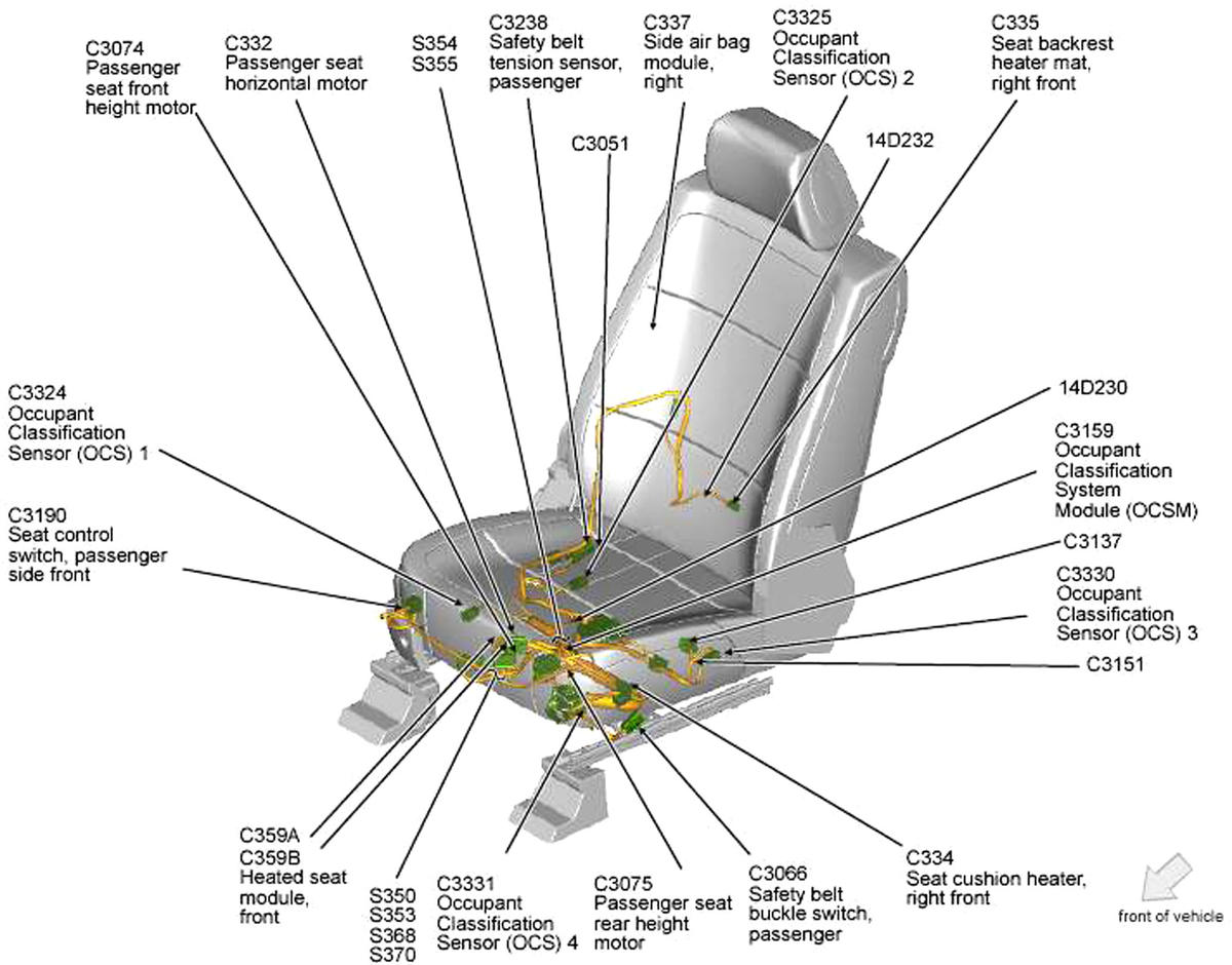 Occupant Classification System Module (OCSM) Under front passenger's seat. See Figure.