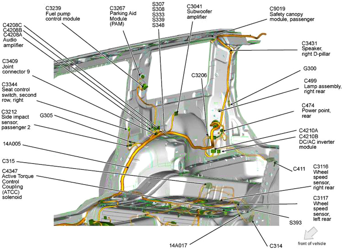 Parking Aid Module (PAM) Right "C" pillar. See Figure.