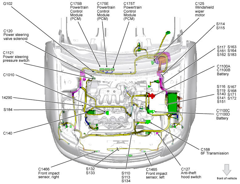 Powertrain Control Module Rear of engine compartment. See Figure.