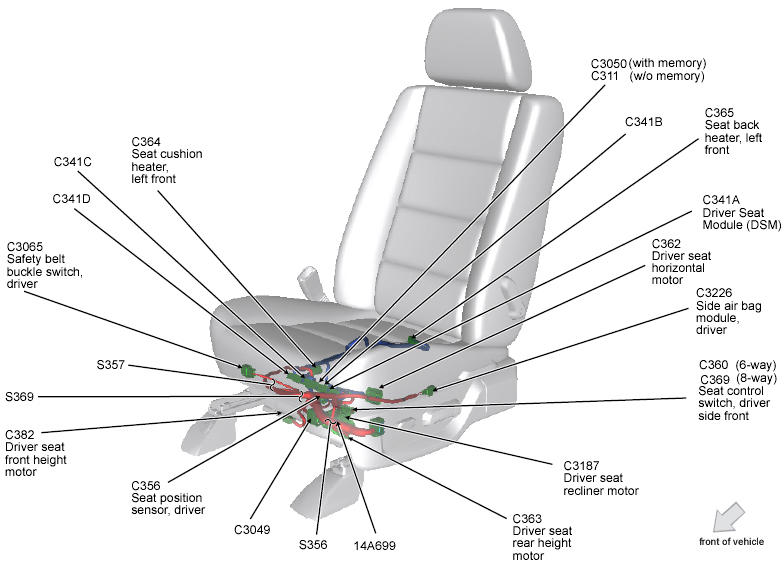 Driver Seat Module (DSM) Under driver's seat. See Figure.