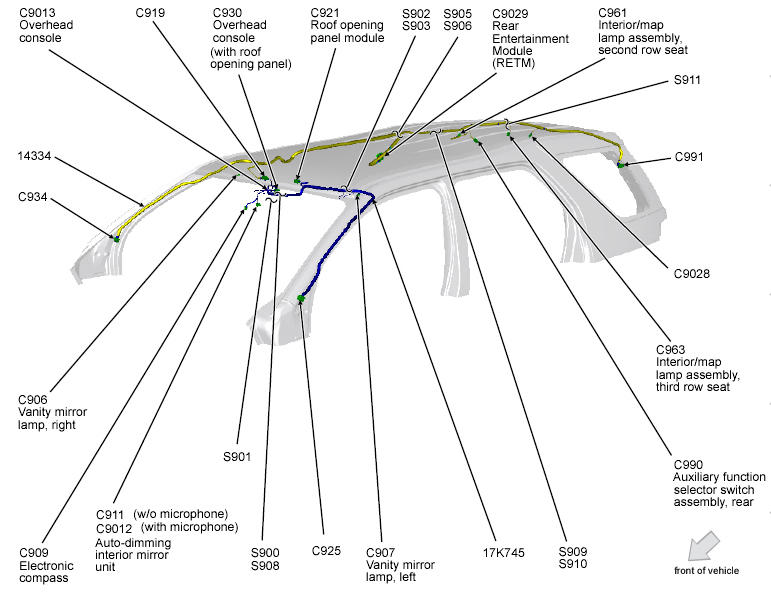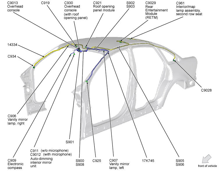Roof Opening Panel Module (Taurus X) Center front of roof. See Figure.