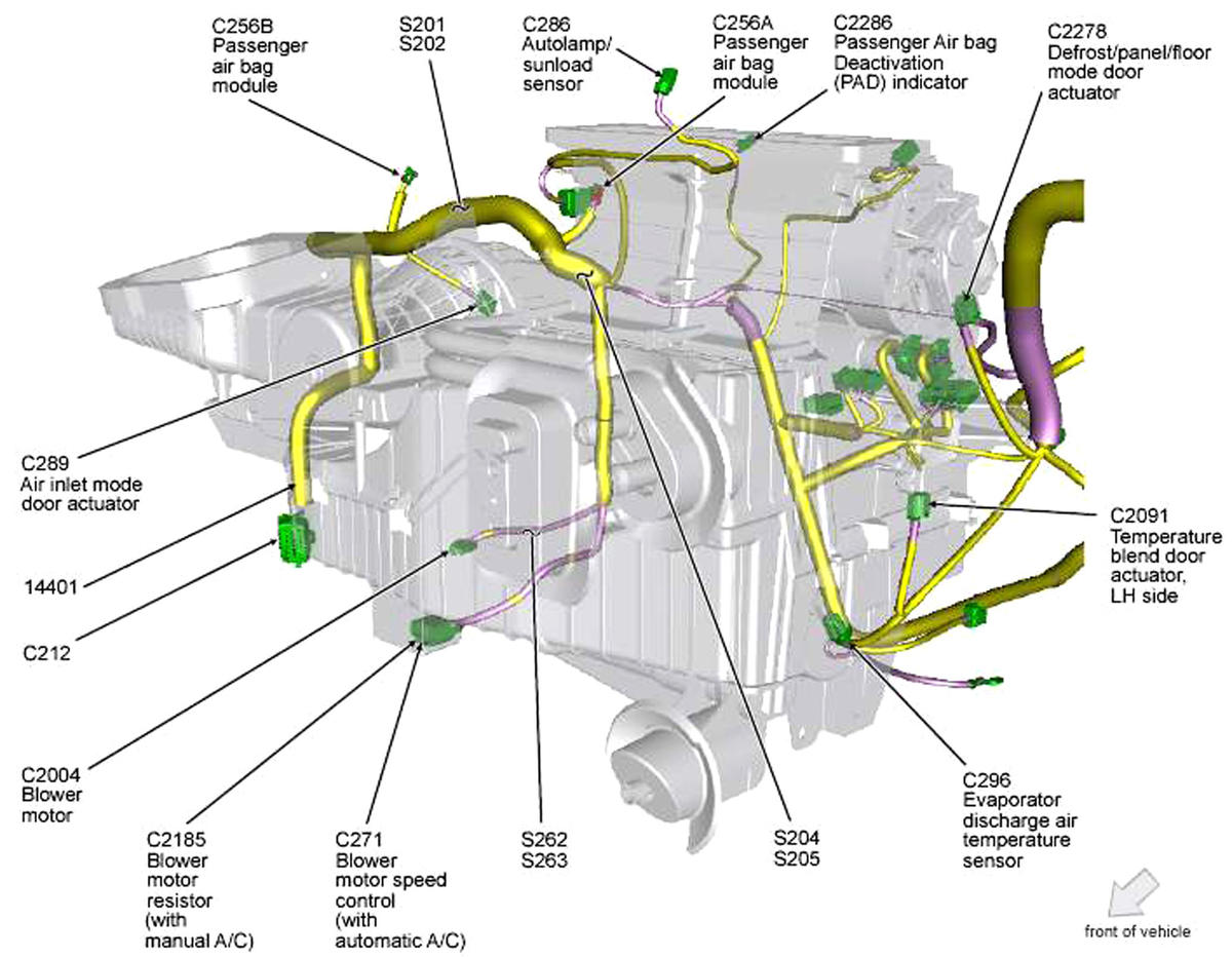 Front Blower Motor Speed Controller Right side of HVAC unit. See Figure.