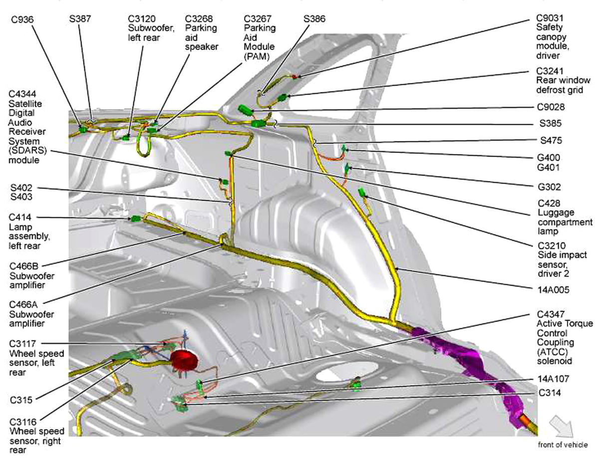Parking Aid Module (PAM) (Sable & Taurus) Left rear of luggage compartment. See Figure.