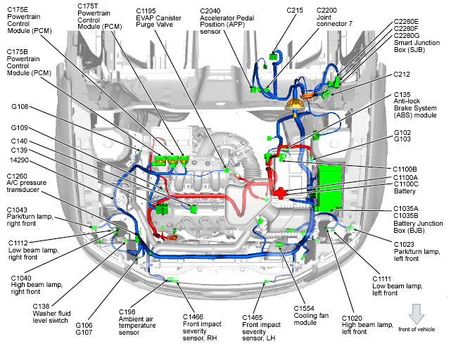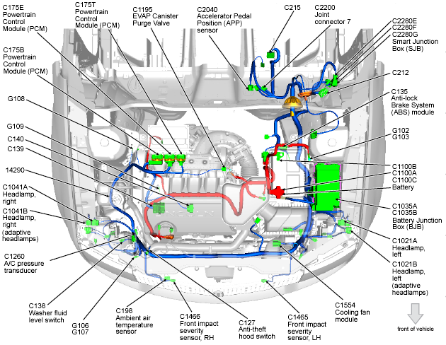 | Cooling Fan Module (Edge) | Left front of engine compartment. See Figure. |