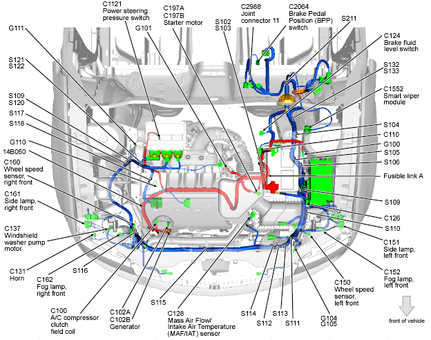 | Smart Wiper Module (MKX) | Left rear of engine compartment. See Figure. |