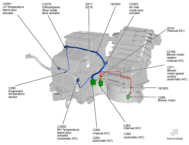 | Blower Motor Speed Control | Near blower motor. See Figure. |