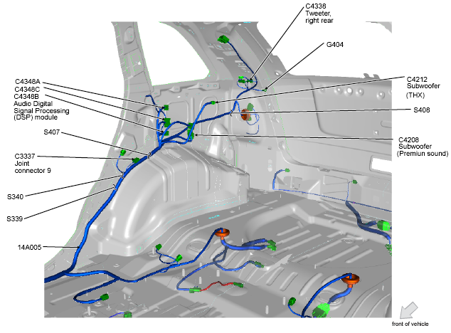 | Audio Digital Signal Processing (DSP) Module | Right "C" pillar. See Figure. |