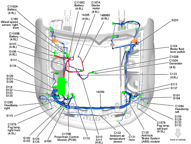| Anti-Lock Brake System (ABS) Module | Left front of engine compartment. See Figure. |