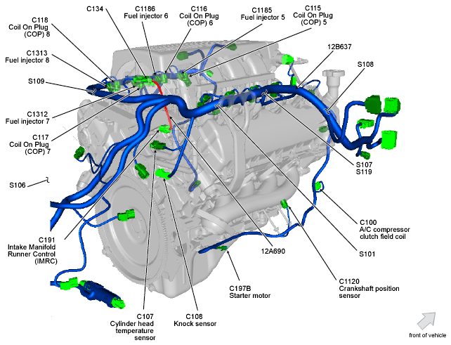 | Intake Manifold Runner Control (IMRC) | Top front of engine. See Figure. |