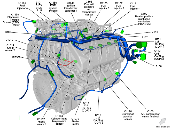 | EGR System Module (5.4L) | Top center of engine. See Figure. |
