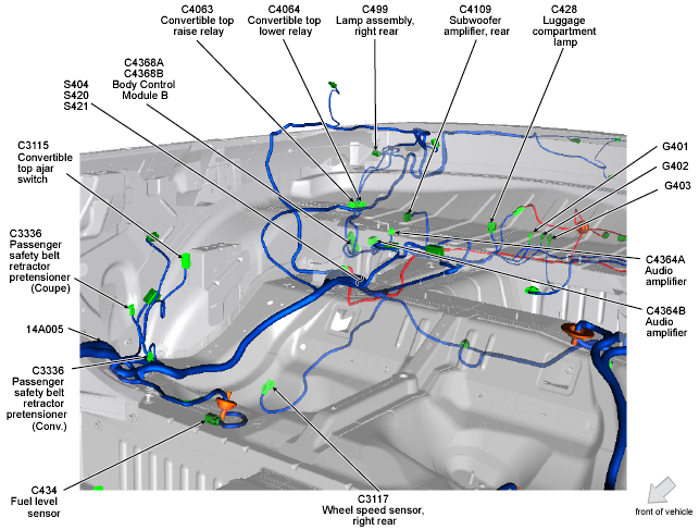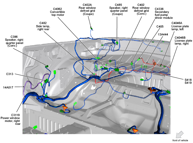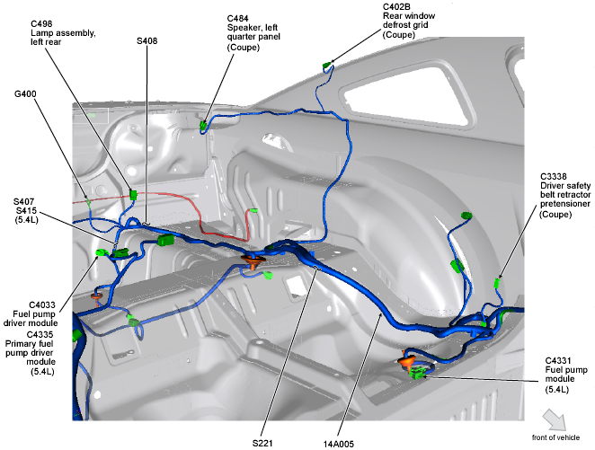| Secondary Fuel Pump Driver Module | Rear of luggage compartment. See Figure. |