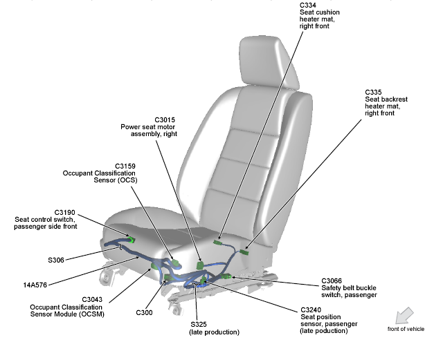 | Occupant Classification Sensor Module | Under passenger's seat. See Figure. |