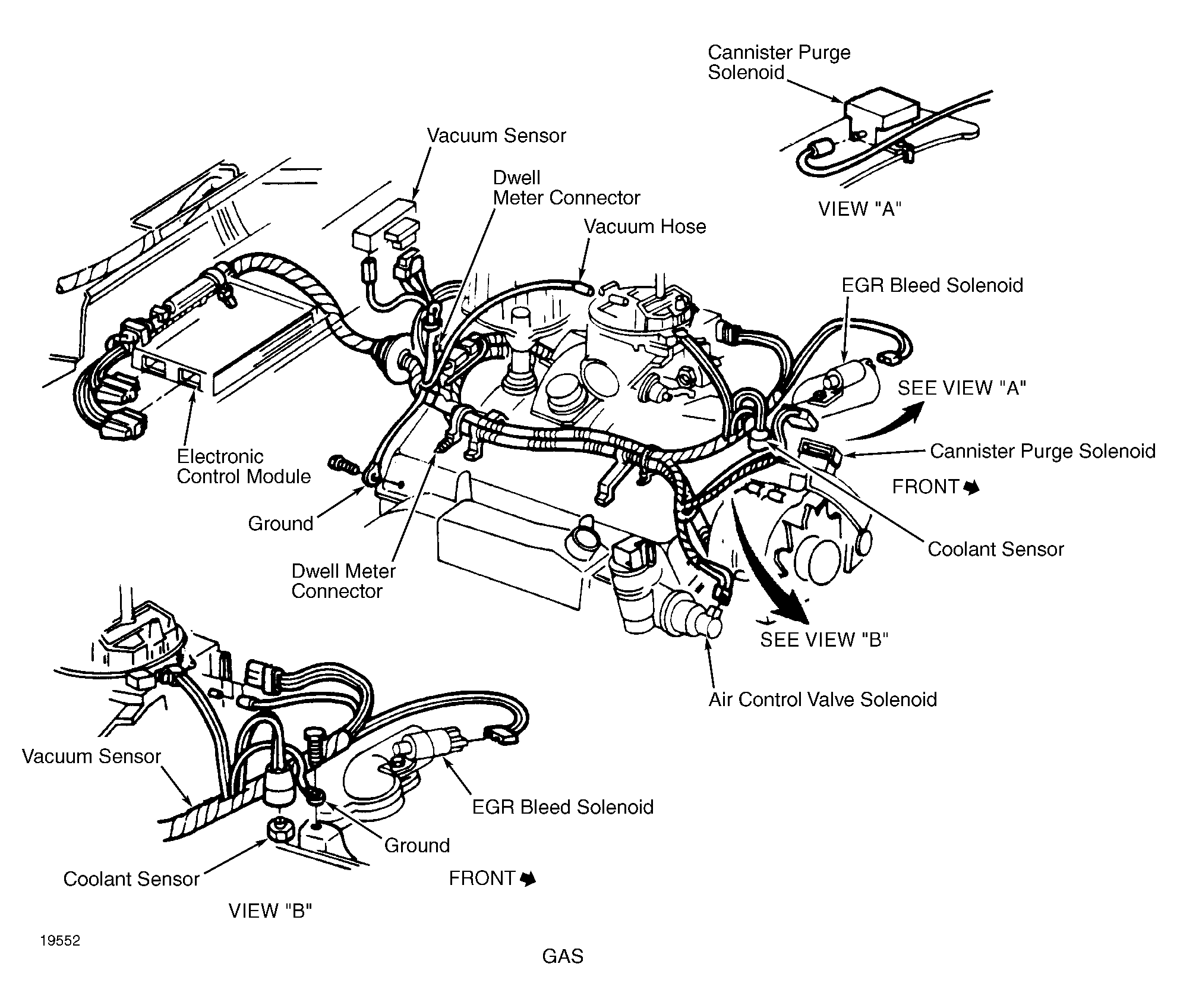 | "CHECK ENGINE" Light Driver (Calif.) | Taped on wiring harness near ECM. See Figure. |