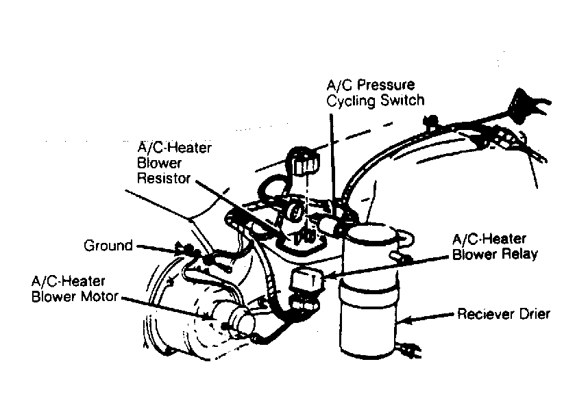 A/C-Heater Blower Resistors On evaporator case, in engine compartment. See Figure .