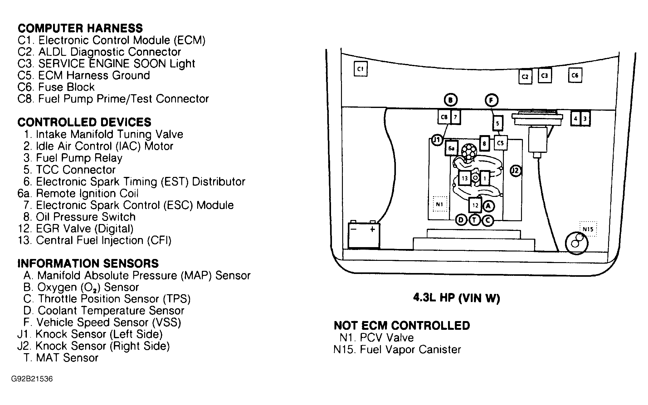 | Variable Tuning Controller (4.3L HP) | On top of intake manifold. | |