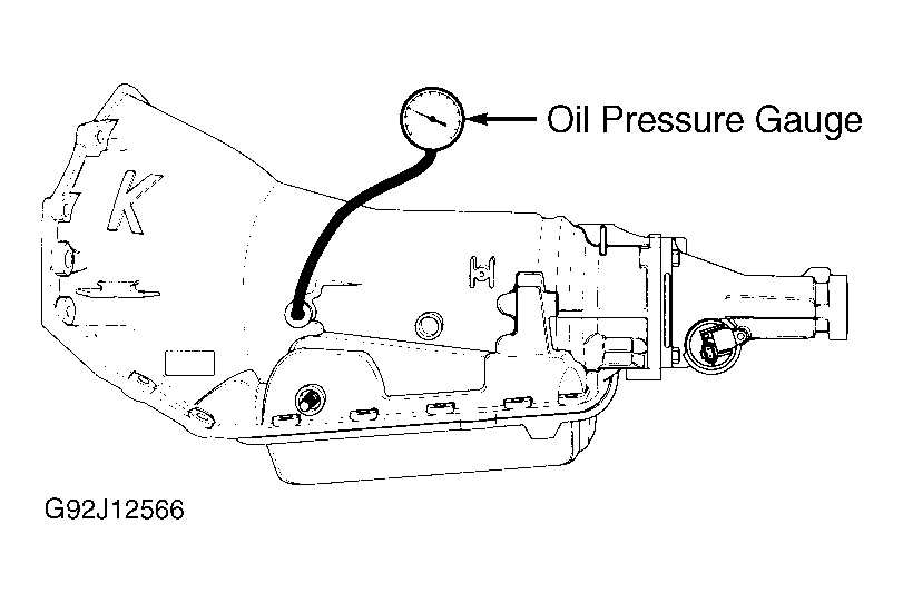 1. Install pressure gauge on transmission line pressure tap. See Fig 1 . Install tachometer on engine. Apply parking brake. Ensure engine is at normal operating temperature.