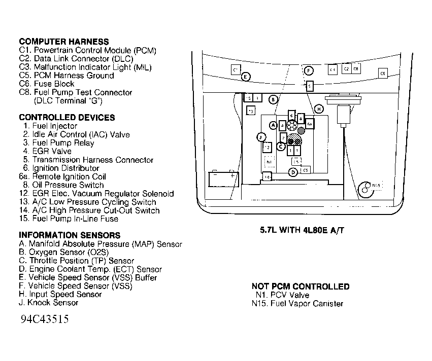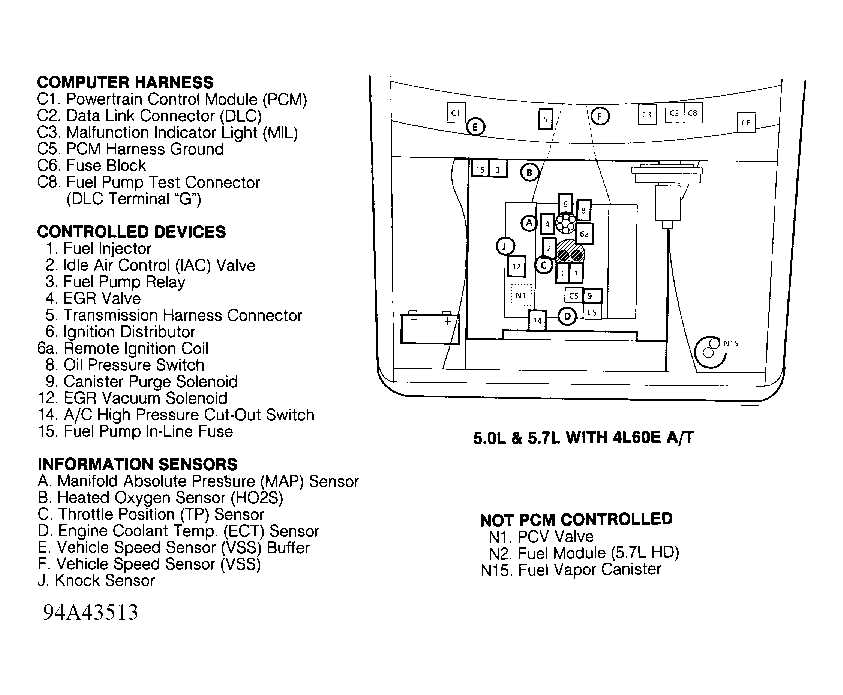 | 5.0L & 5.7L W/4L60E A/T | Behind right side of dash, near blower motor. See Figure. | |