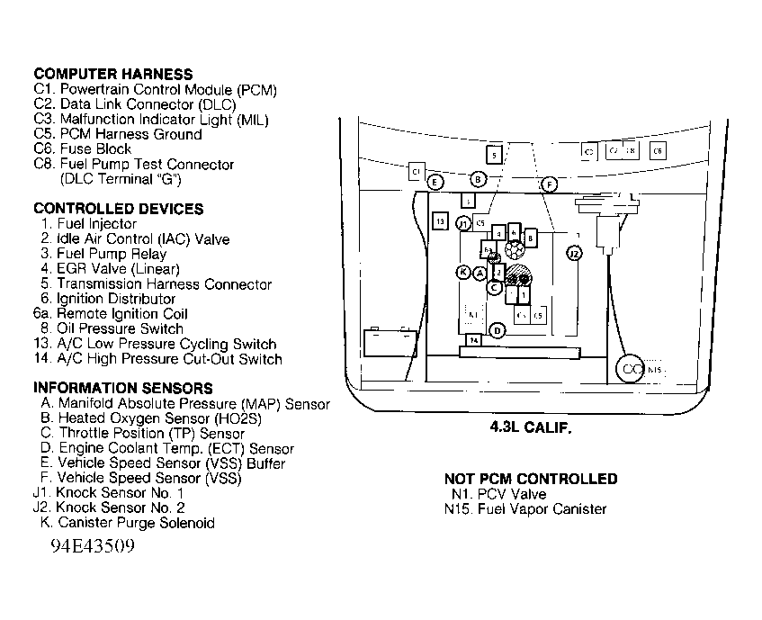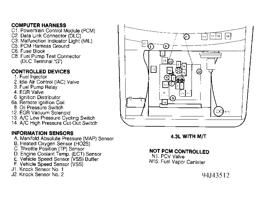 | 4.3L California | Behind right side of dash, near blower motor. See Figure. | |