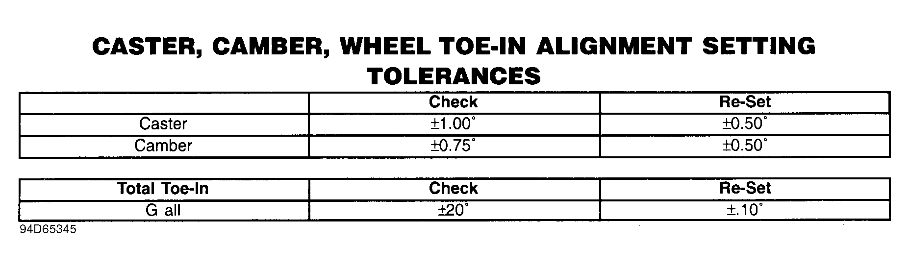 | Toe-In (2) | 0 (0) | - 0.05 to 0.05 (- 1.5 to 1.5) | ||||||||||||