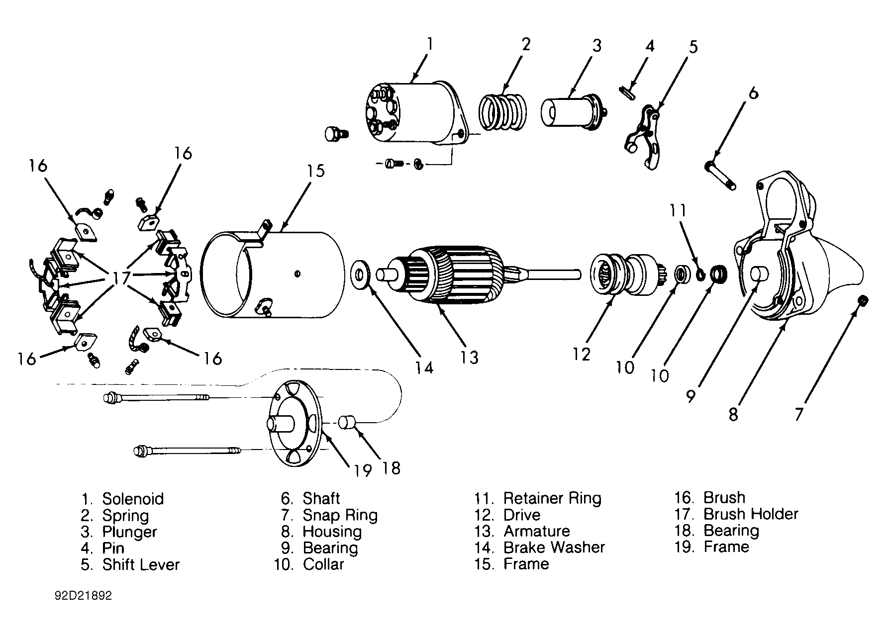 Clean all parts using a clean cloth. DO NOT clean armature, field coils, or drive assembly in any grease-dissolving solvents or damage to insulation and (starter) drive assembly will occur.