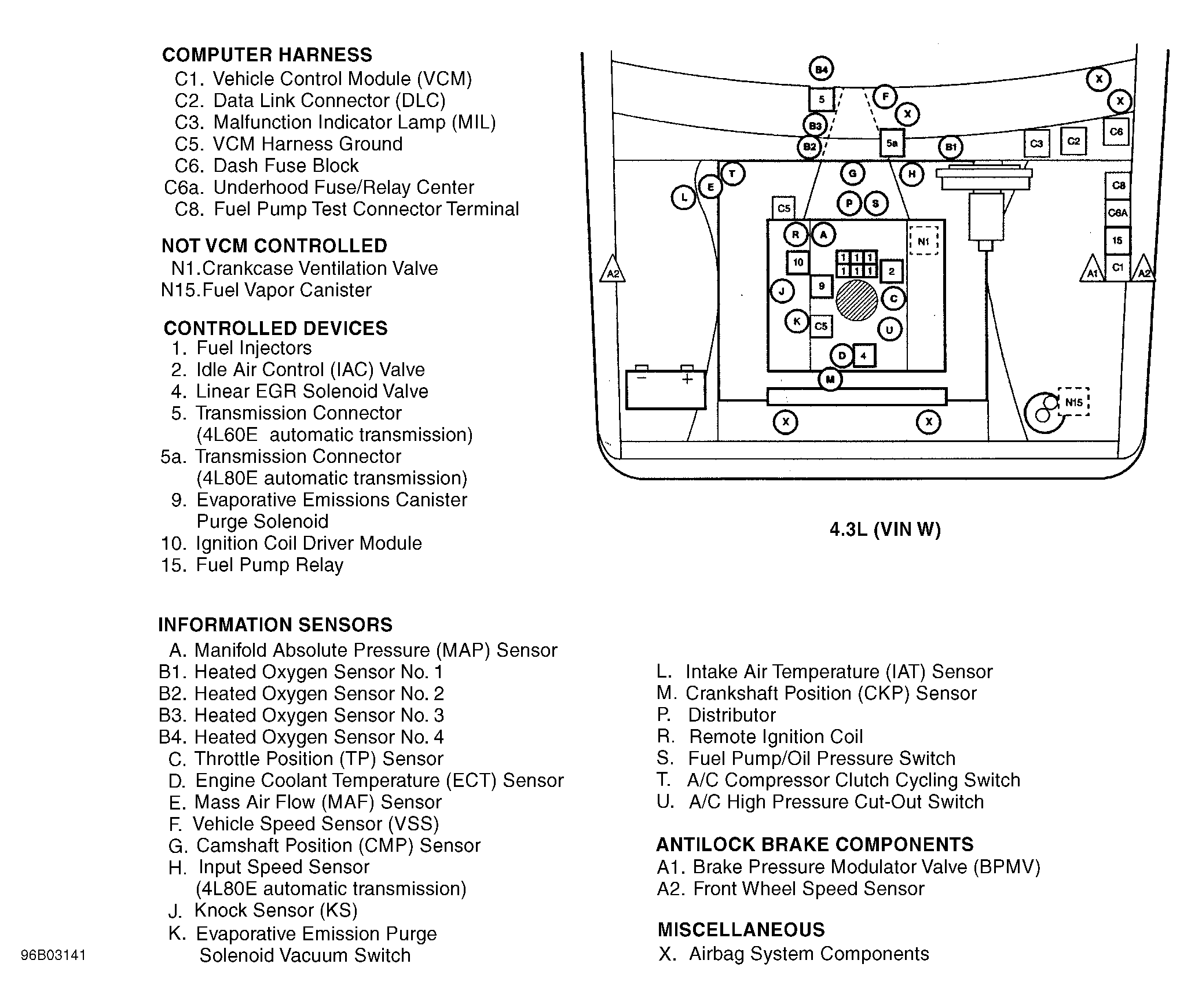 | Vehicle Control Module (VCM) (4.3L VIN W) | On left side of engine compartment. See Figure . |
