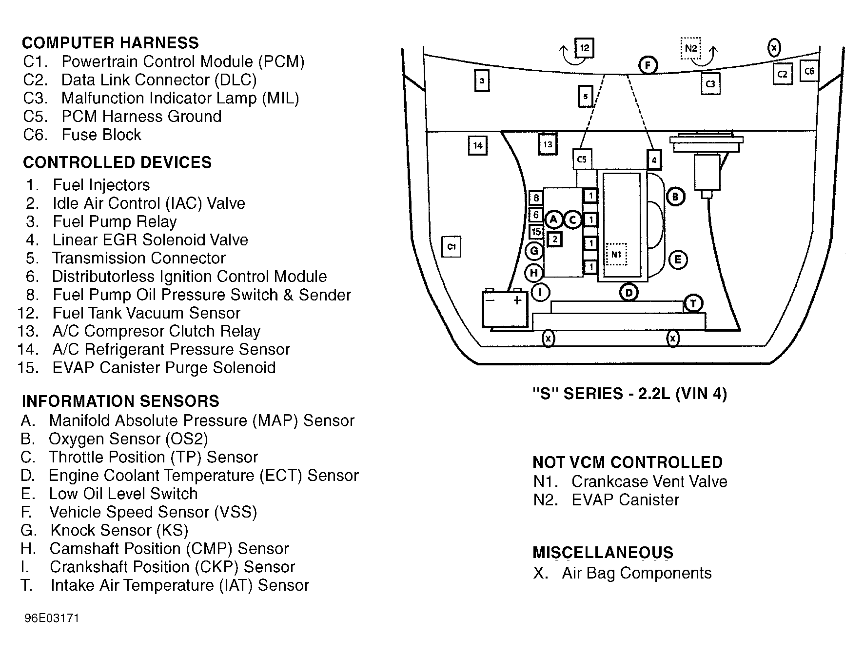 | Powertrain Control Module (PCM) (2.2L VIN 4) | On right front of engine compartment. See Figure. |