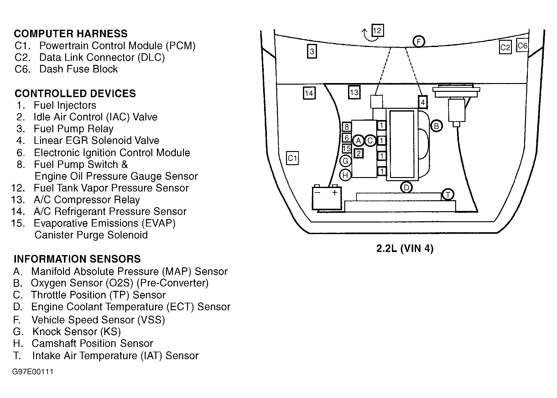 | Powertrain Control Module (PCM) (2.2L VIN 4) | On right front of engine compartment. See Figure. |