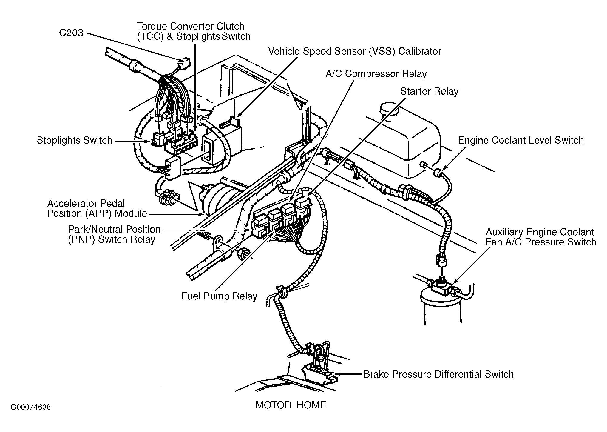 Vehicle Speed Sensor (VSS) Calibrator (Motor Home) On left side of driver's island, under relay bracket. See Figure.