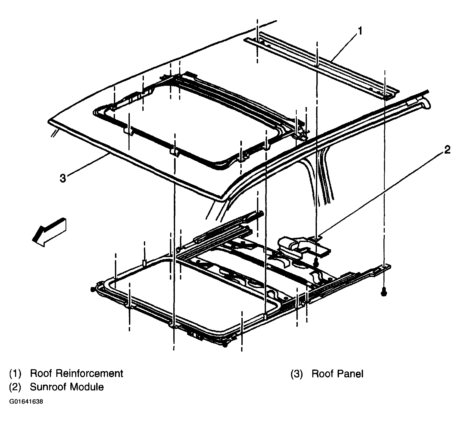 | Sun Roof Module | Above headliner, at rear of sun roof assembly. See Figure. |