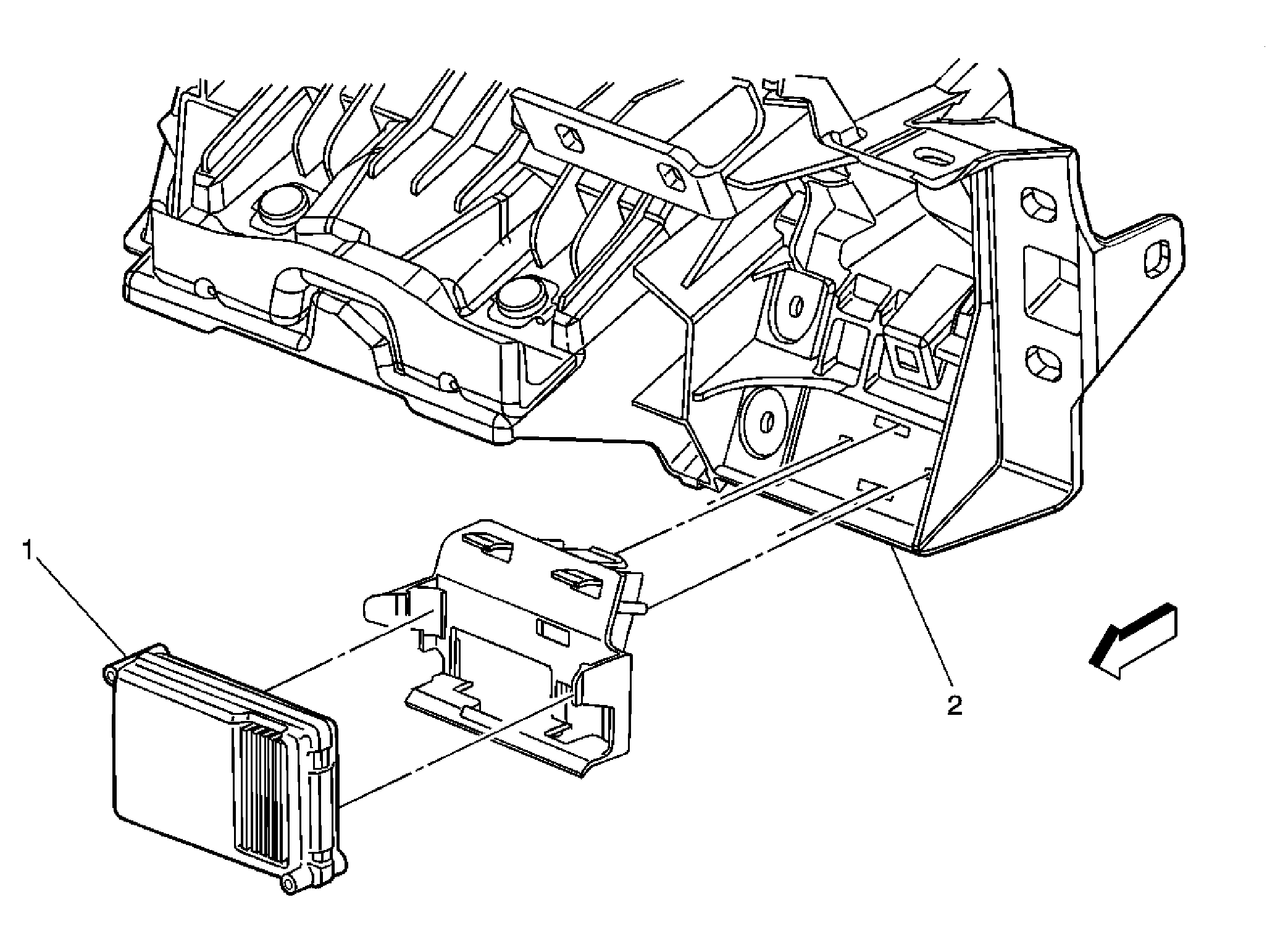 | Inflatable Restraint Sensing & Diagnostic Module (SDM) | Below rear of center console. |