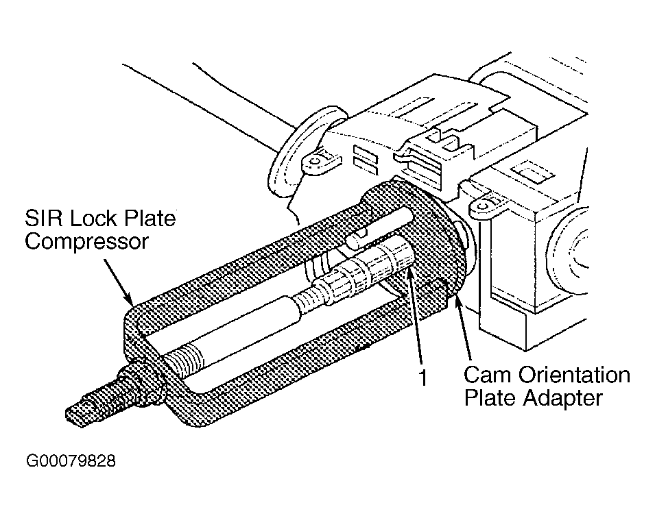 - Install the steering column lock plate compressor and cam orientation plate adapter to the steering shaft and compress the shaft lock shield (2). See Fig 1 . Install the lock shield retainer to the steering column shaft. Remove the steering column lock plate compressor and cam orientation plate adapter from the steering shaft.