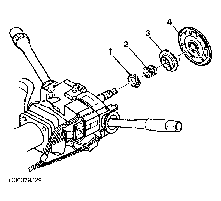 - Install the following components to the steering shaft: turn signal cancel cam (3) and shaft lock shield (4). See Fig 2 .