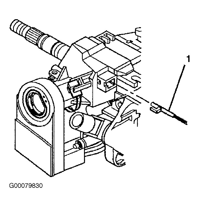 - Connect the passlock electrical connector from the lock module. Rotate the key alarm switch connector to the electronic lock module. Install park lock cable (1) to the electronic lock module. See Fig 3 .