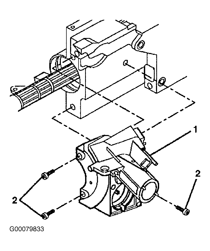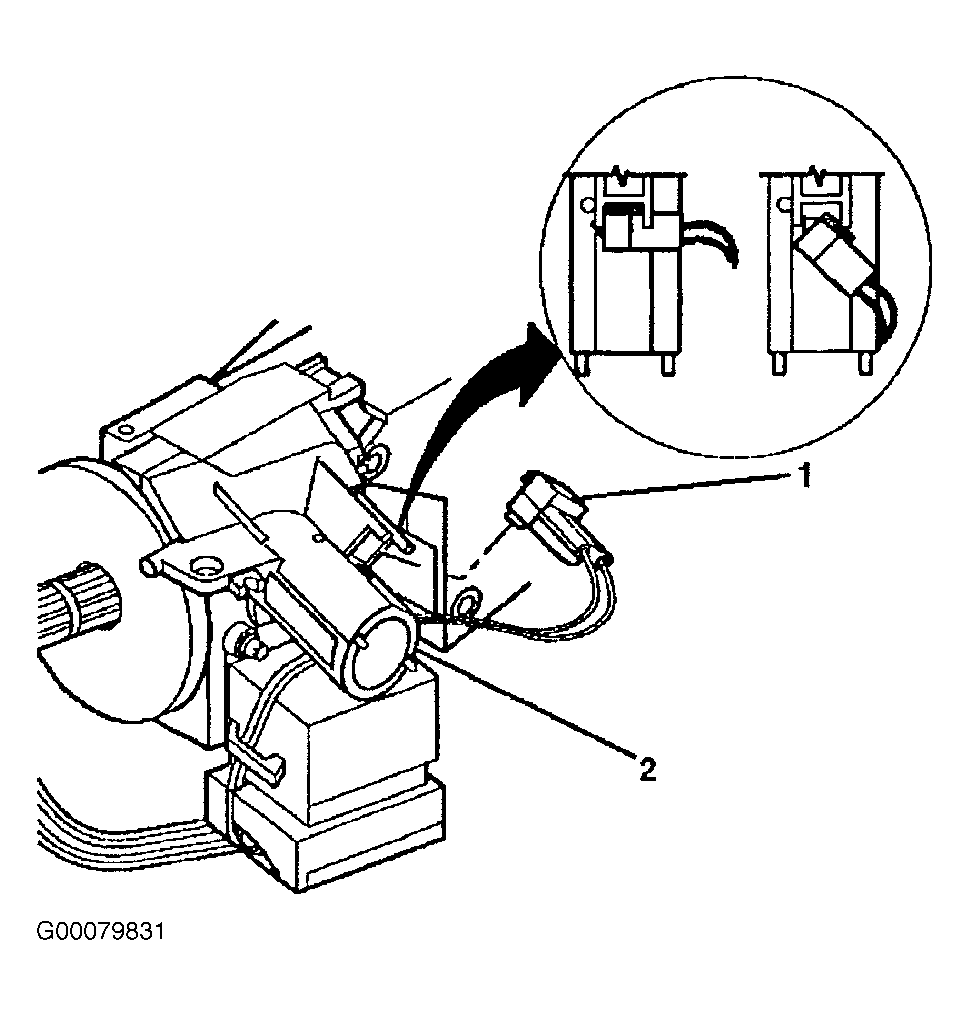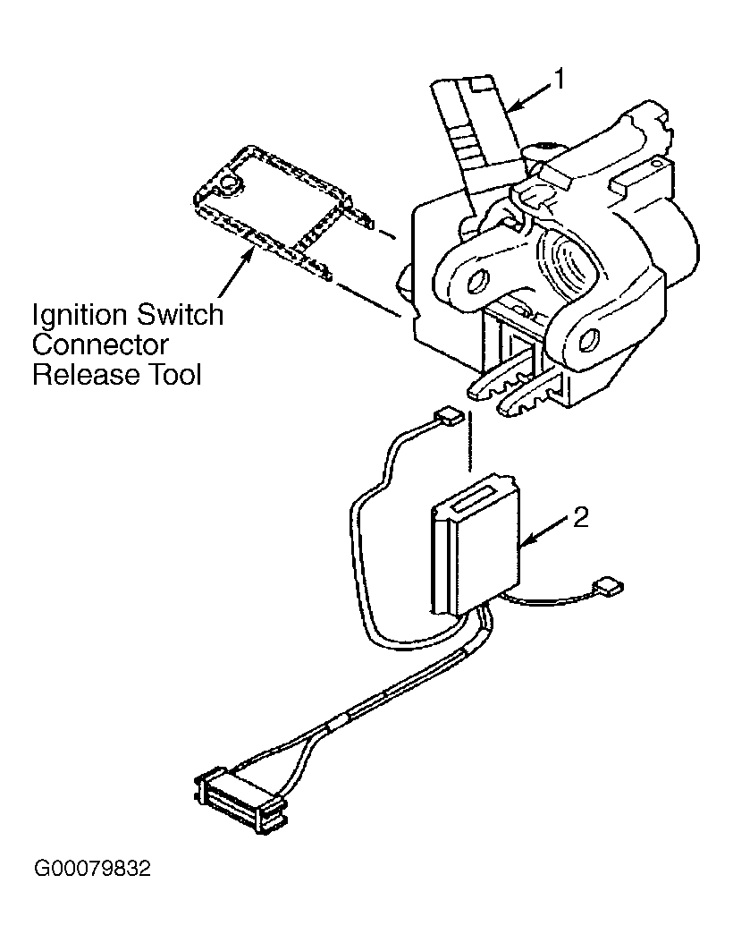 - Install the electronic lock module (1) to the steering column housing. See Fig 6 . Install the electronic lock module (1) mounting screws (2). See Fig 5 . Install the ignition switch (2) to the electronic lock module (2). See Fig 4 . Install the ignition lock cylinder.
