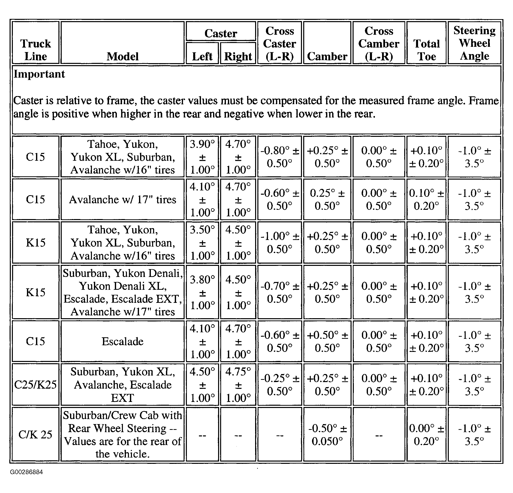 Wheel Alignment Specifications