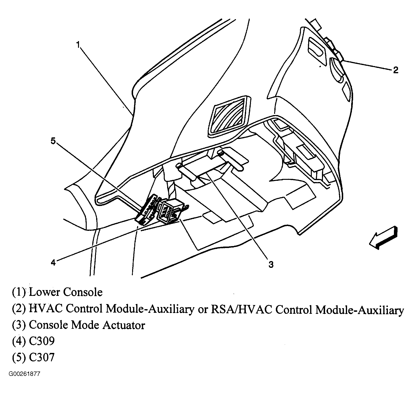 | HVAC Control Module-Auxiliary | Under lower console. See Figure . |
