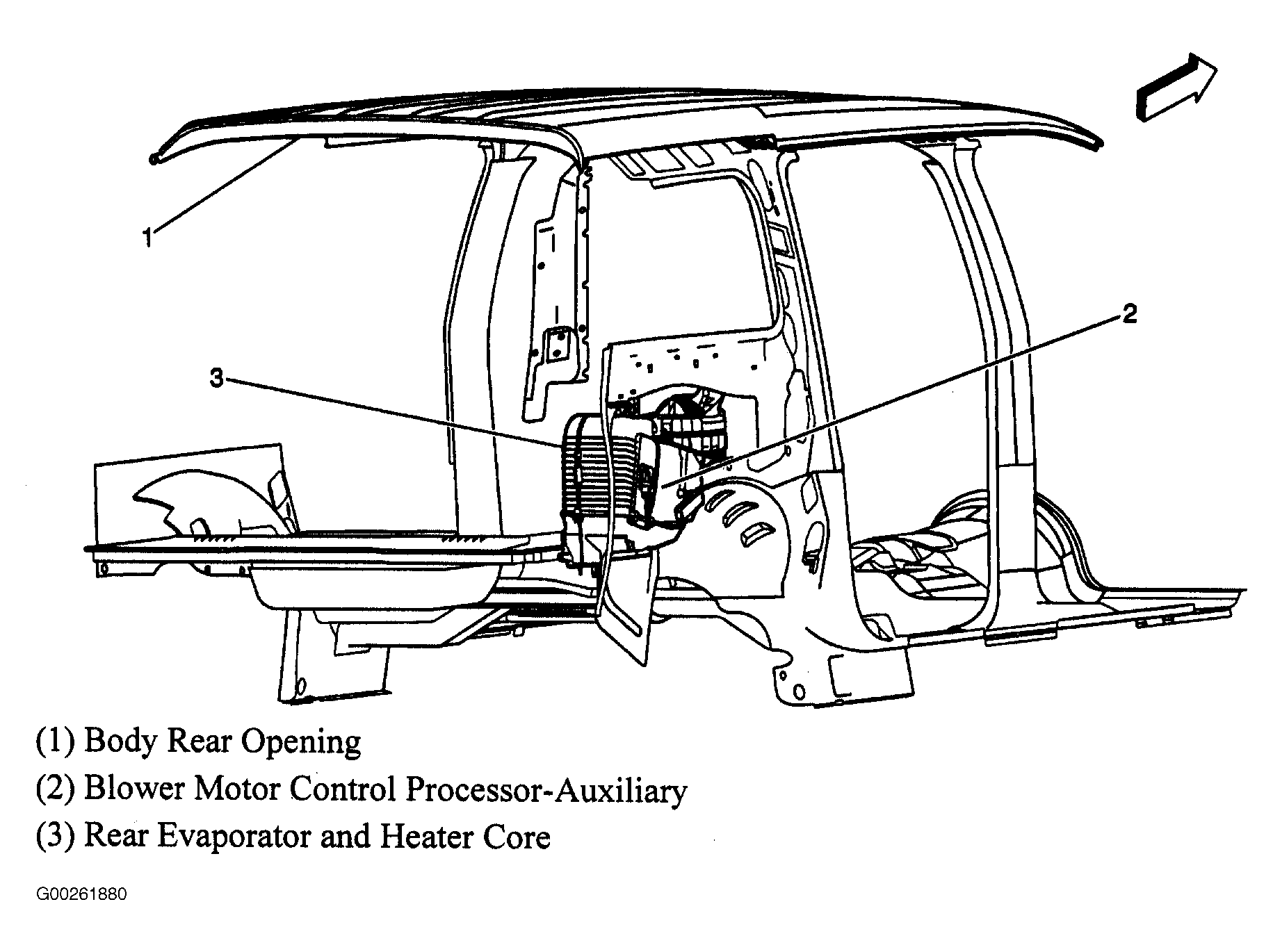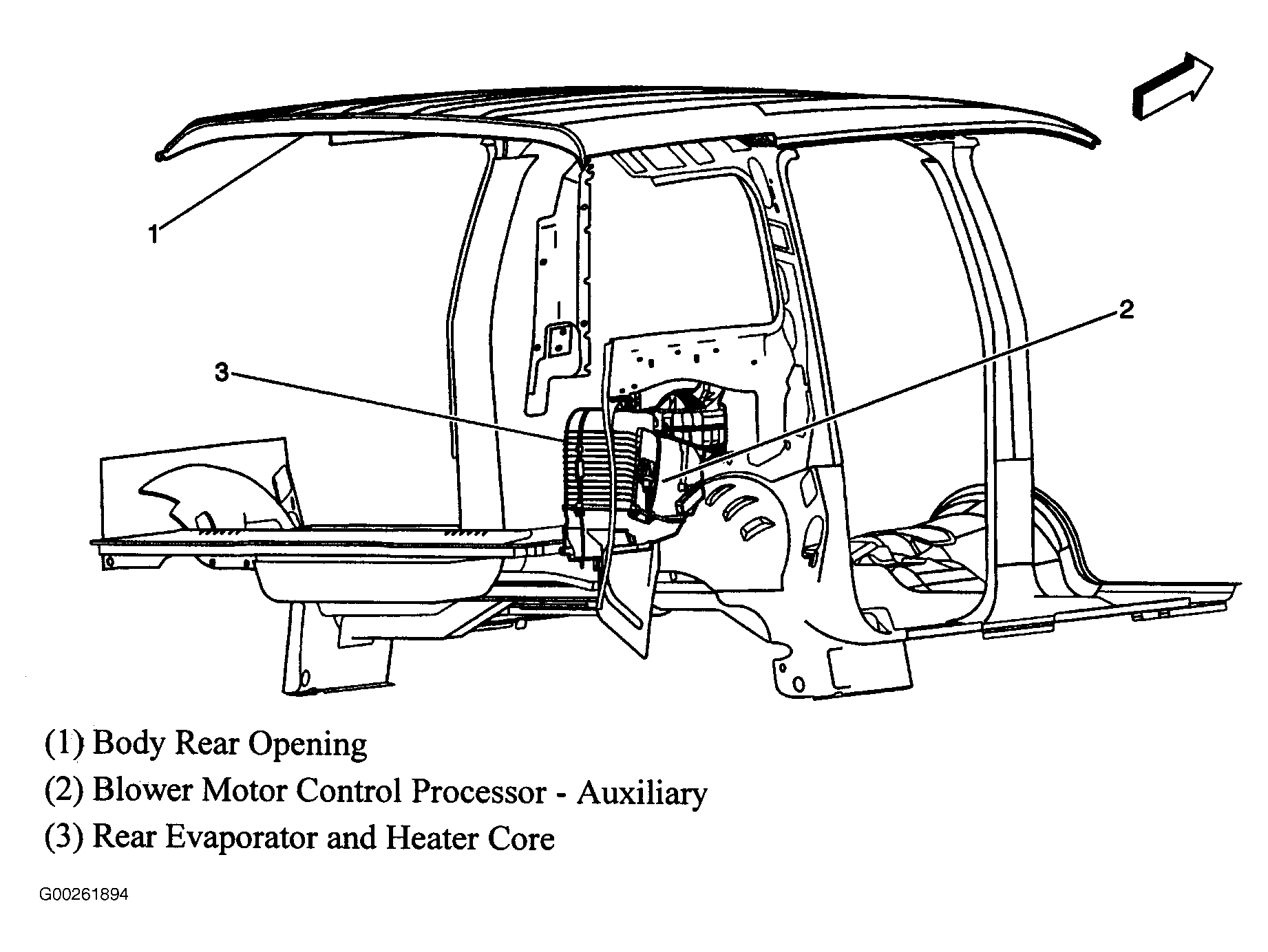 | Blower Motor Control Processor-Auxiliary | Right rear of luggage compartment. See Figure . |