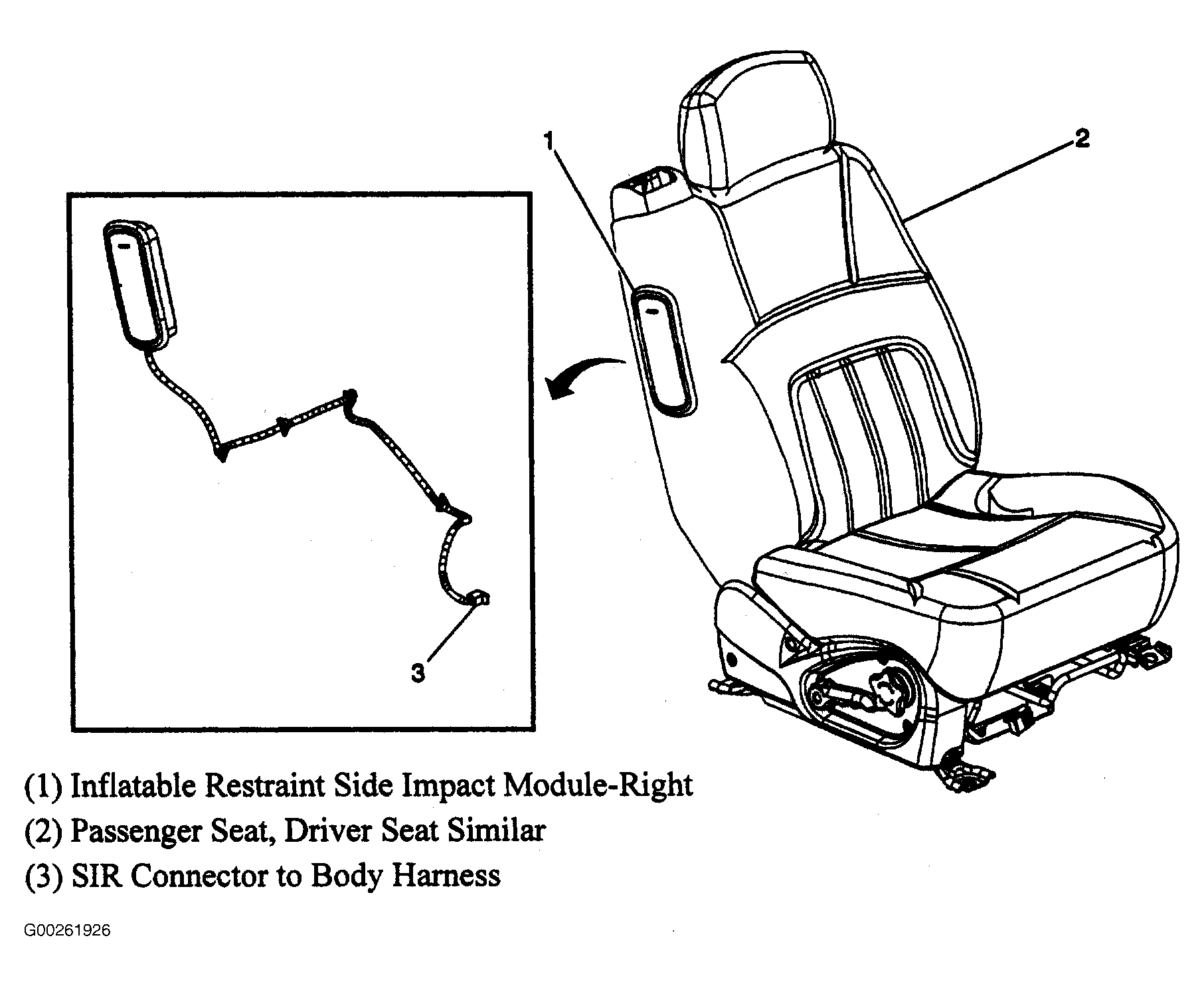 | Inflatable Restraint Side Impact Module-Right | In right front seat back. See Figure . |