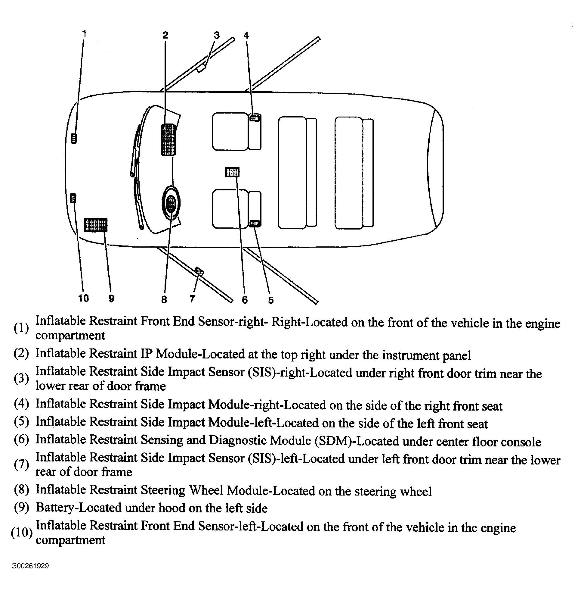| Inflatable Restraint Side Impact Module-Left | Left side of driver's seat. See Figure . |