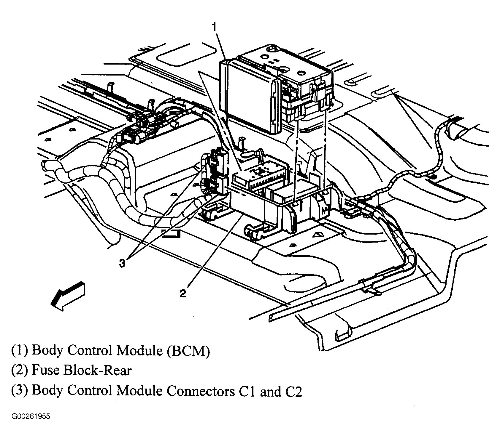 | Body Control Module Connectors | Beneath left rear seat, on rear fuse block. See Figure . |