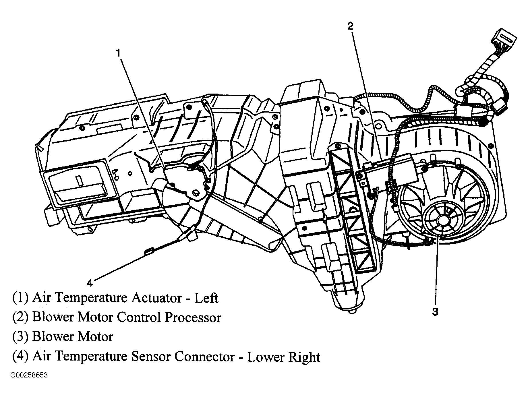 Blower Motor Control Processor Near blower motor, on HVAC assembly. See Figure.