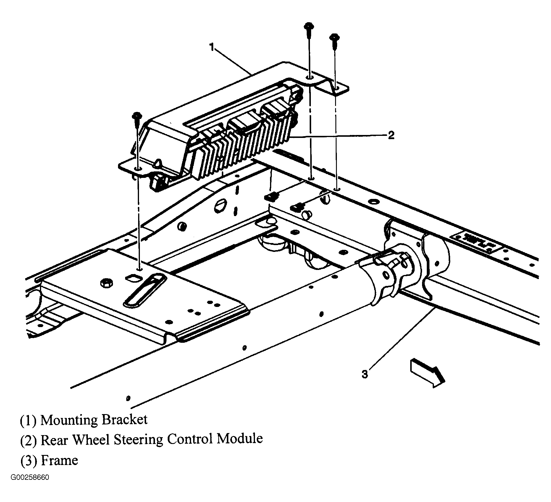 Rear Wheel Steering Control Module On rear frame. See Figure.