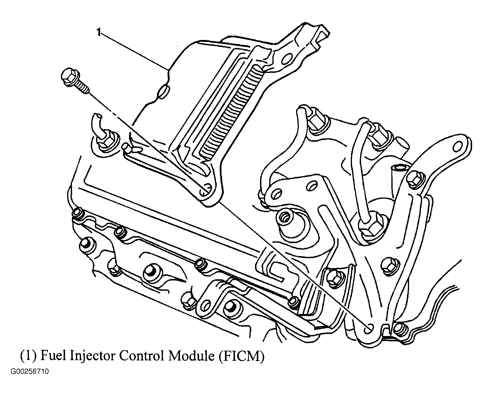 Alternative Fuel Injector Control Module (FICM) Below air filter assembly. See Figure.