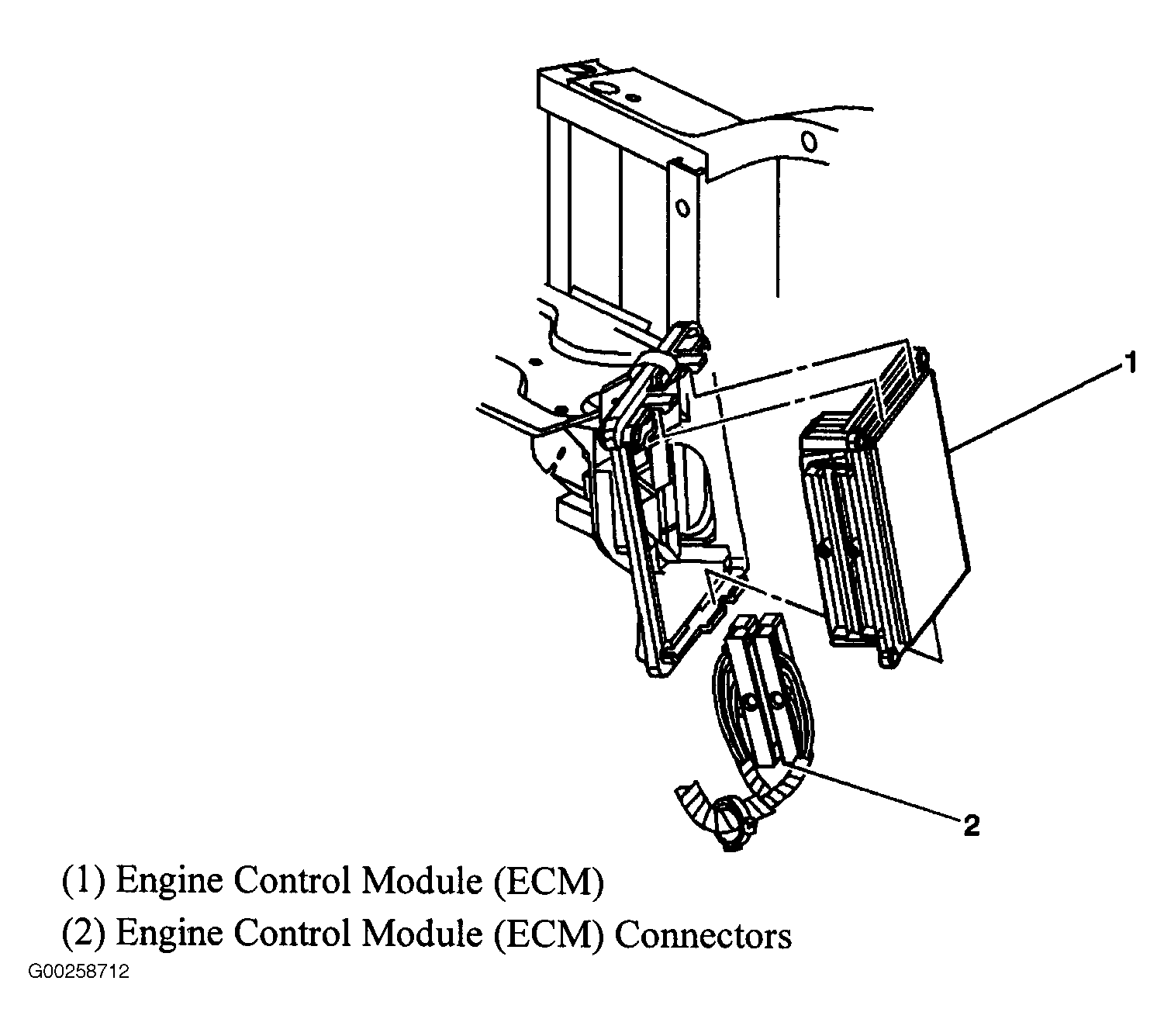 Engine Control Module (ECM) (6.6L) At left front of engine compartment. See Figure.