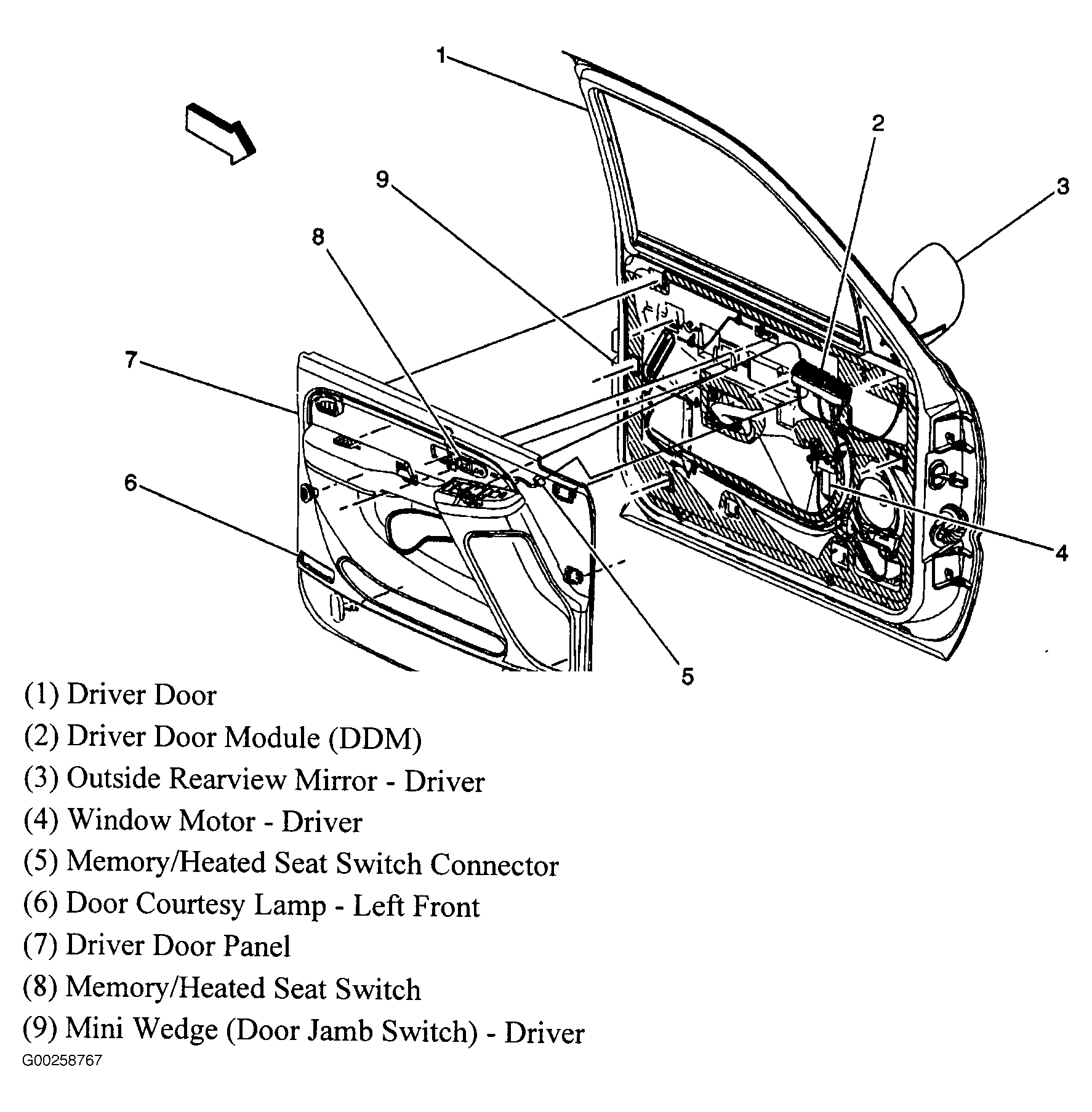 Driver Door Module (DDM) In driver's door. See Figure.