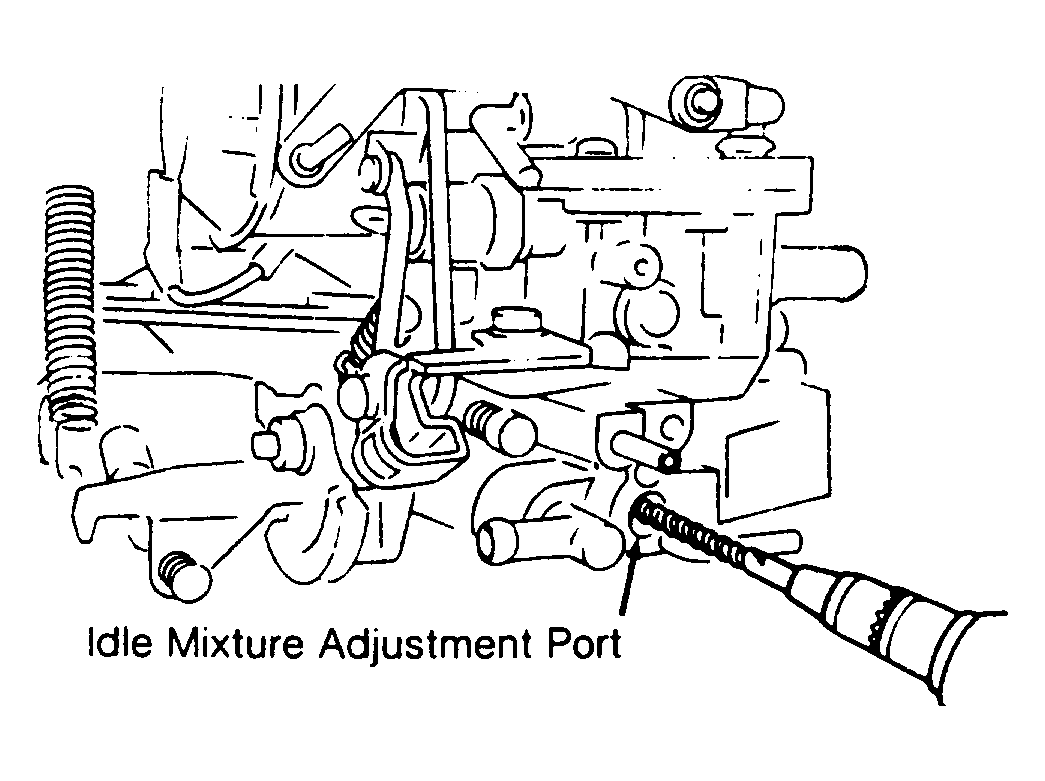 - Remove carburetor. Drill 1/4" deep hole in idle mixture adjusting screw plug. See Fig 1 . Remove plug and install carburetor. Start engine and warm to normal operating temperature. Disconnect idle set connector ("CHECK ENGINE" light will come on).