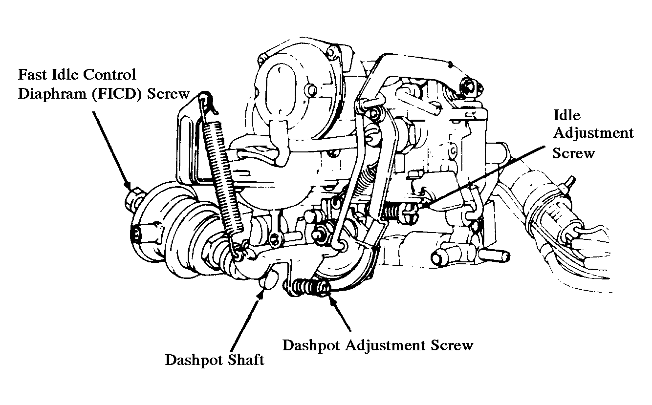 Warm engine to operating temperature and turn all accessories off. Disconnect and plug all carburetor vacuum lines. Place transmission in Neutral. Set parking brake, and block drive wheels. Check idle speeds. See IDLE SPEED SPECIFICATIONS table. If not within specification, turn idle speed adjusting screw. See Figure .